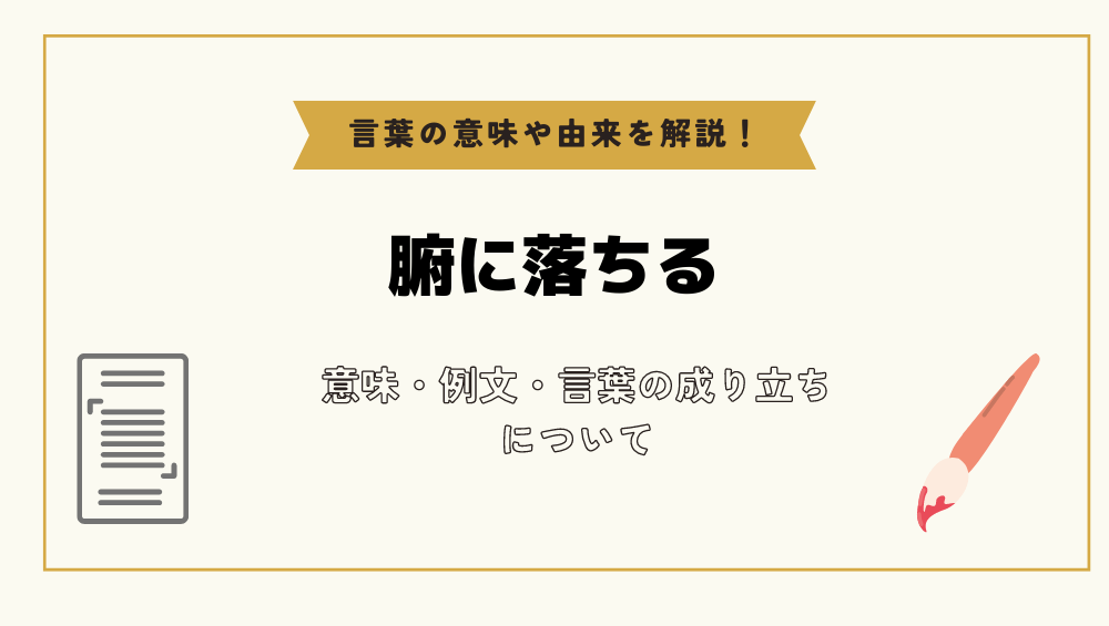 - 江戸時代から使われており、「腑=内臓」「落ちる=収まる」の比喩が語源となっている。